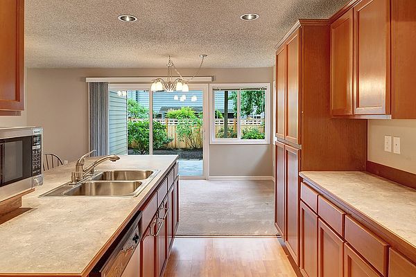 Beautiful 3 bedroom/3 bath all on one level, ground floor, end condo unit. No Stairs! Large 20×20 fully fenced peaceful backyard with 2 patios. Spacious kitchen features stainless steel appliances, maple cabinets, pantry, dining area and built-in office nook. Living room with cozy gas fireplace surrounded in slate. Large master suite with walk-in closet and 3/4 bath and separate laundry room. Located in a quiet Edmonds neighborhood and 2 assigned uncovered parking spaces just right out front of unit and lots of storage. Easy access to I-5, minutes to Downtown Edmonds, close to shopping, parks, schools, golf and more. Don’t Miss Out On This One!