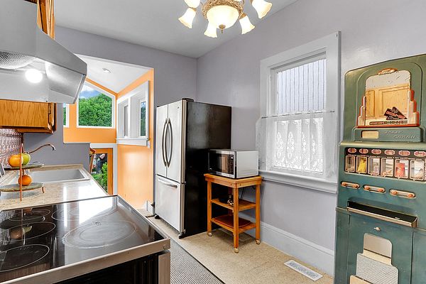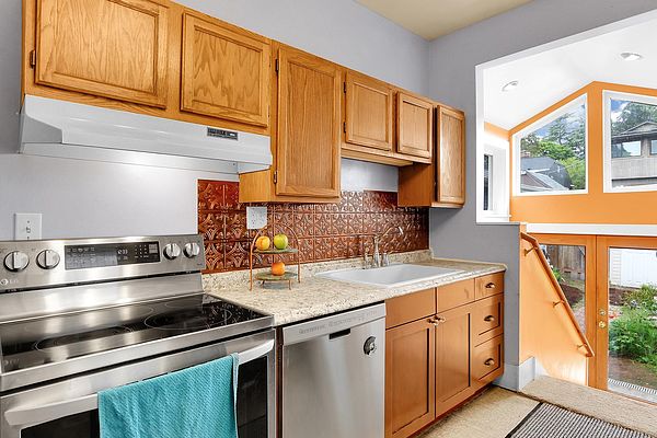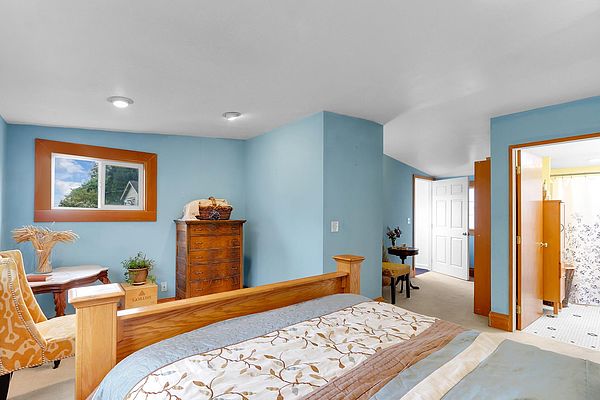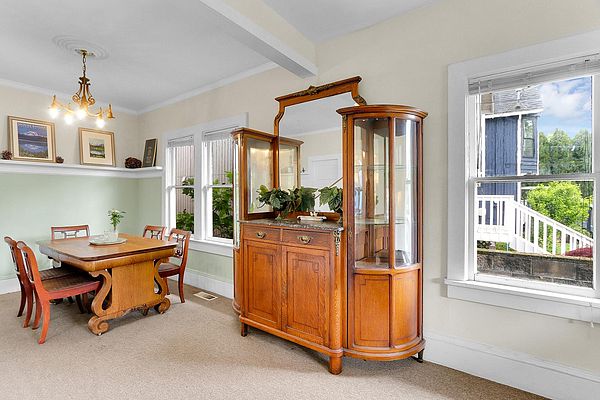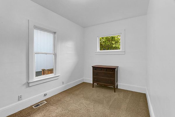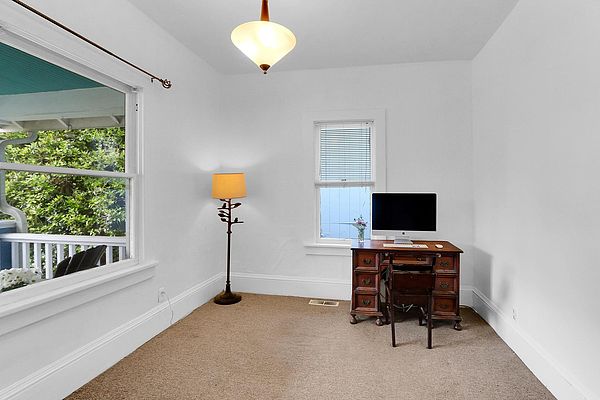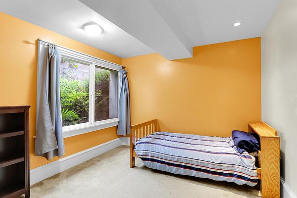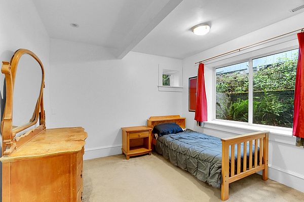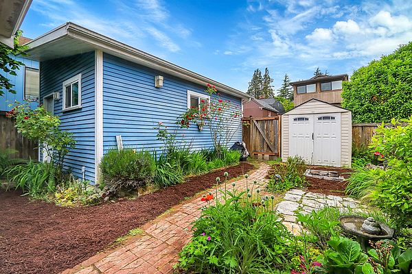 The covered porch with seating space welcomes you to this Phinney Ridge Classic with abundant square footage & charm. This spacious home offers a secluded upstairs primary suite with a full bath. The main floor (w/hardwood under carpet) has a light-filled living/dining room, 3 bedrooms, a full bath, & a galley kitchen ready to be taken to the next level. Downstairs, you will find the daylight basement with 8′ ceilings, featuring a large family room, 2 additional bedrooms, a full bath, & a full-size laundry room. The north side of the house features a fenced patio & a large detached one-car garage with access from the alleyway. The backyard has plenty of space to add a hot tub, BBQ area (gas connection already installed), garden, or possibly ADU.