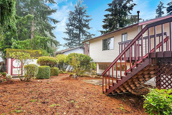 Spacious 4-bedroom home in desirable location ready for new owner! This property offers a light-filled living room w/ cozy wood-burning fireplace, dining area w/ access to deck for entertaining, and kitchen that opens to living room. Primary bedroom and bath, two large bedrooms, extra storage or closet space and full bath complete the upstairs. Downstairs you will find the bonus room, utility room w/ half bath and fourth large bedroom. All set on a beautiful, private wooded lot, plenty of parking space and storage. Close to schools, shopping, new transit station and more. Must see!