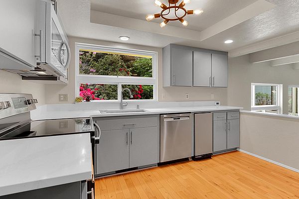 This beautiful Edmonds home is located in the wonderful Maplewood neighborhood & is surrounded by a mature, tranquil garden setting. Main floor offers a light-filled living room with a wood-burning fireplace, private dining room, kitchen that opens to cozy family room with/ wet bar & gas stove. Laundry area & half bath also on the main floor leading to the two car garage. Relax & enjoy the spacious sunroom just off the family room with access to the lovely, landscaped backyard & patio. Upstairs, you will find the primary bedroom featuring an updated gorgeous en suite ¾ bath + walk-in closet, two spacious bedrooms, & full bath complete the second floor. AC throughout. Easy access to main roads, schools, DTN Edmonds, new Light Rail Station.