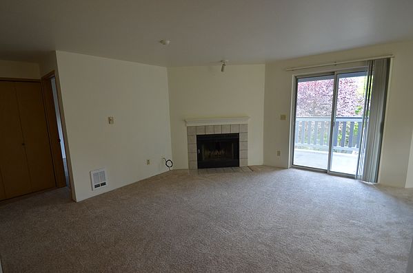 Top floor corner 2 bedroom 1 3/4 bath condo features 2 spacious bedrooms one w/master bath. Cozy living room w/wood burning fireplace. Separate dining room with eating bar. Oversized patio w/ additional storage. One carport and one uncovered parking space. Serene park like setting of 8 units per building (34 total in complex). Corner unit, lots of windows, full size washer & dryer. Well managed HOA. Great location close to park -n- ride, shops, restaurants, freeway access, parks, library, Lynnwood Recreational center, etc…